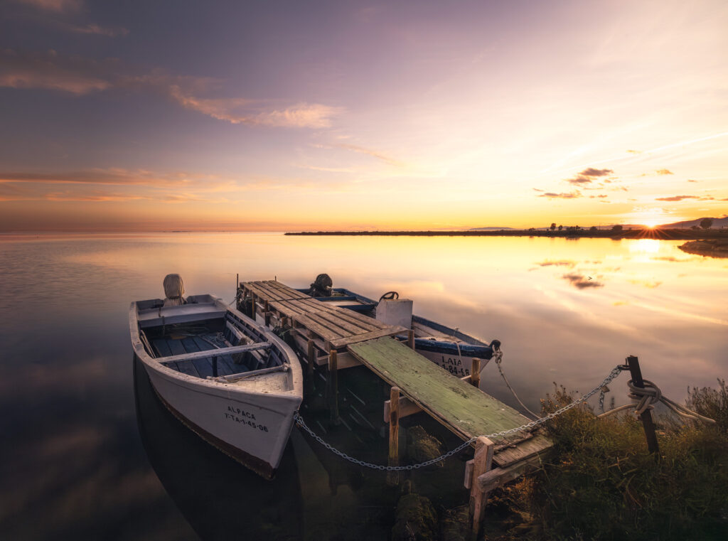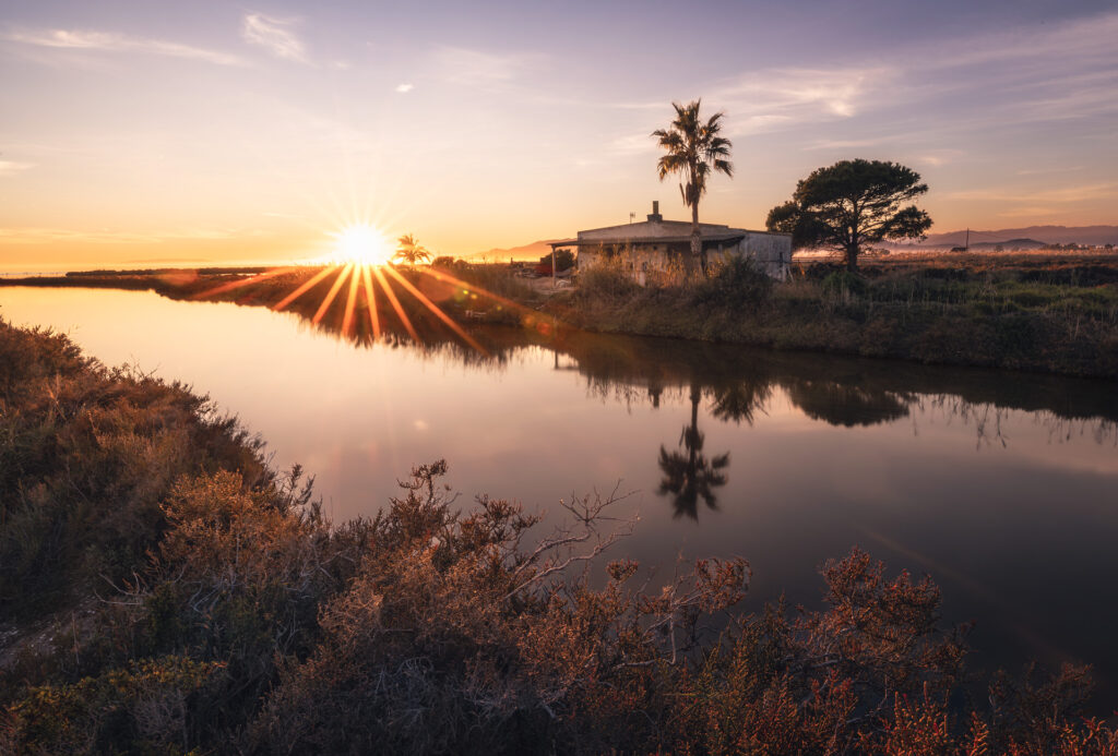 Los mejores momentos para practicar fotografia en el Delta del Ebro son, sin duda, el amanecer y el atardecer. La luz es suave, direccional y llena de matices. Además, es en estos momentos cuando el paisaje se vuelve más silencioso y fotogénico.